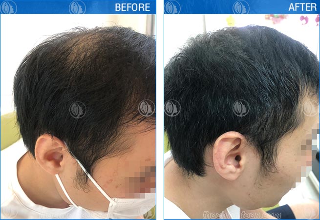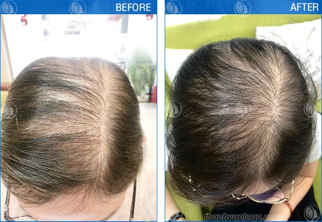 Tình trạng rụng tóc, hói đầu cải thiện rõ rệt sau mỗi lần điều trị. Hiệu quả tối ưu chỉ sau 3-12 tháng, tùy từng bệnh nhân